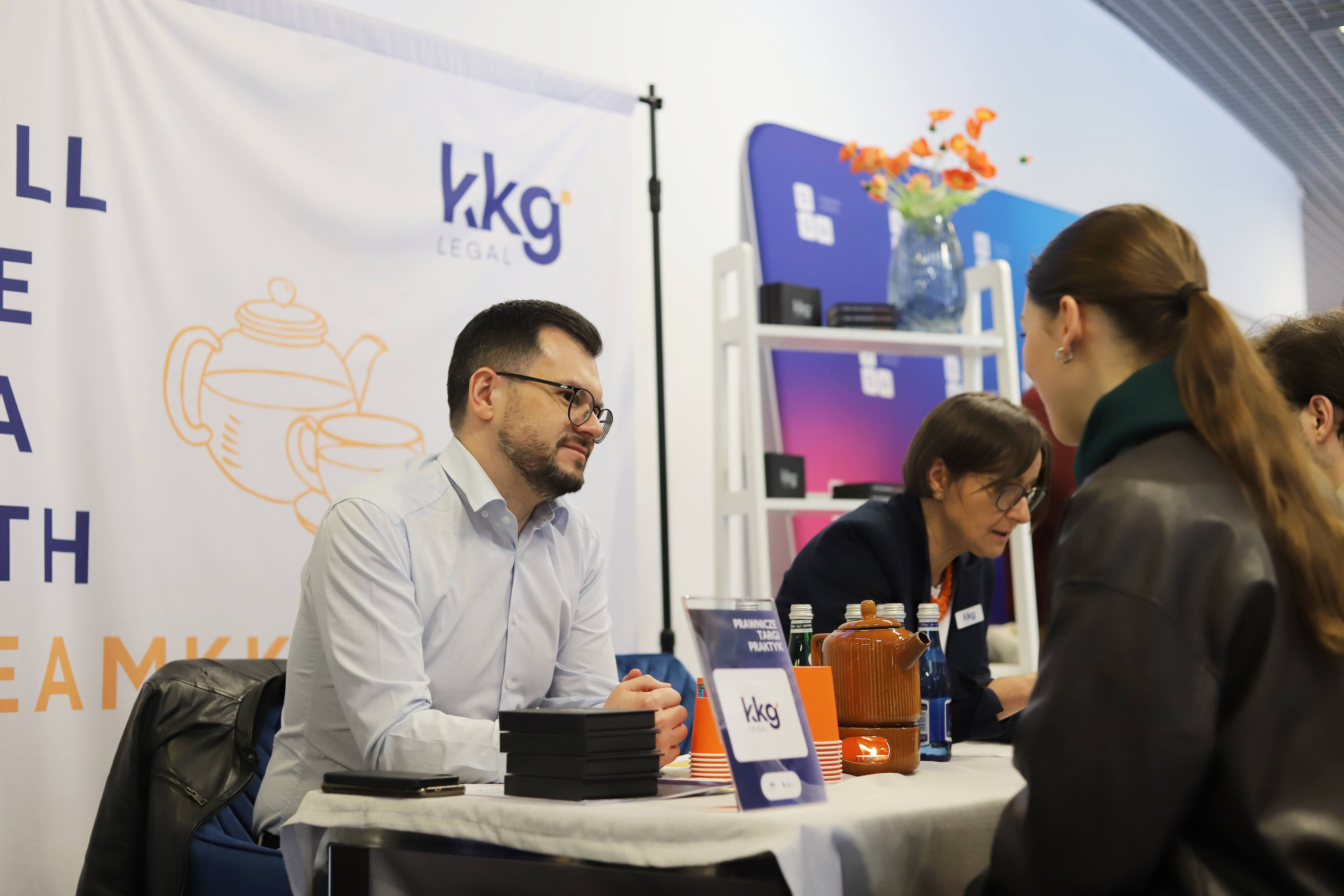 Podczas targów można było porozmawiać z przedstawicielami TeamKKG: mec. Kamilem Zawickim, mec. Krzysztofem Ściborowskim, mec. Patrycją Nowakowską, mec. Agatą Ziobroń i apl. adw. Stanisławem Lalikiem. To osoby z różnych praktyk i na różnych etapach kariery, dzięki czemu rozmowy pokazywały KKG Legal z wielu perspektyw – od pierwszych doświadczeń, po poziom managing partnera.