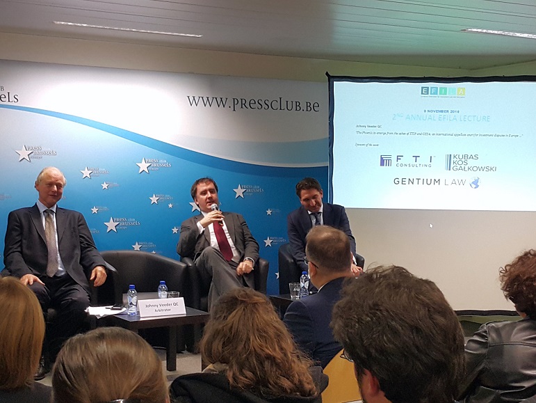 9 listopada 2016 roku w Brukseli odbył się Wykład Roczny EFILA Feniks mający powstać z popiołów umów TTIP i CETA: międzynarodowy sąd apelacyjny do spraw sporów inwestycyjnych w Europie, wygłoszony przez Johnny Veeder’a QC światowej sławy arbitra zajmującego się arbitrażem handlowym i inwestycyjnym.