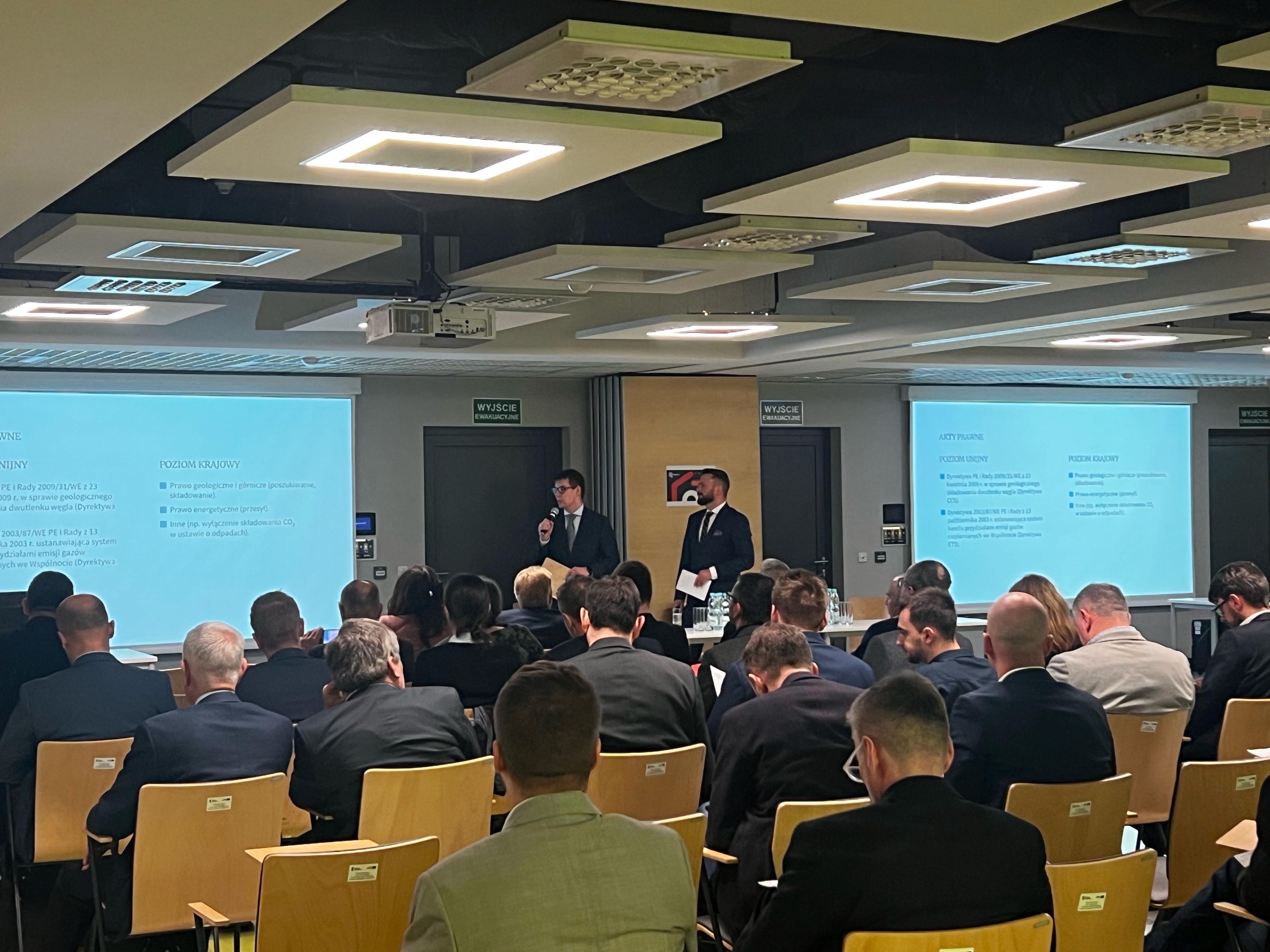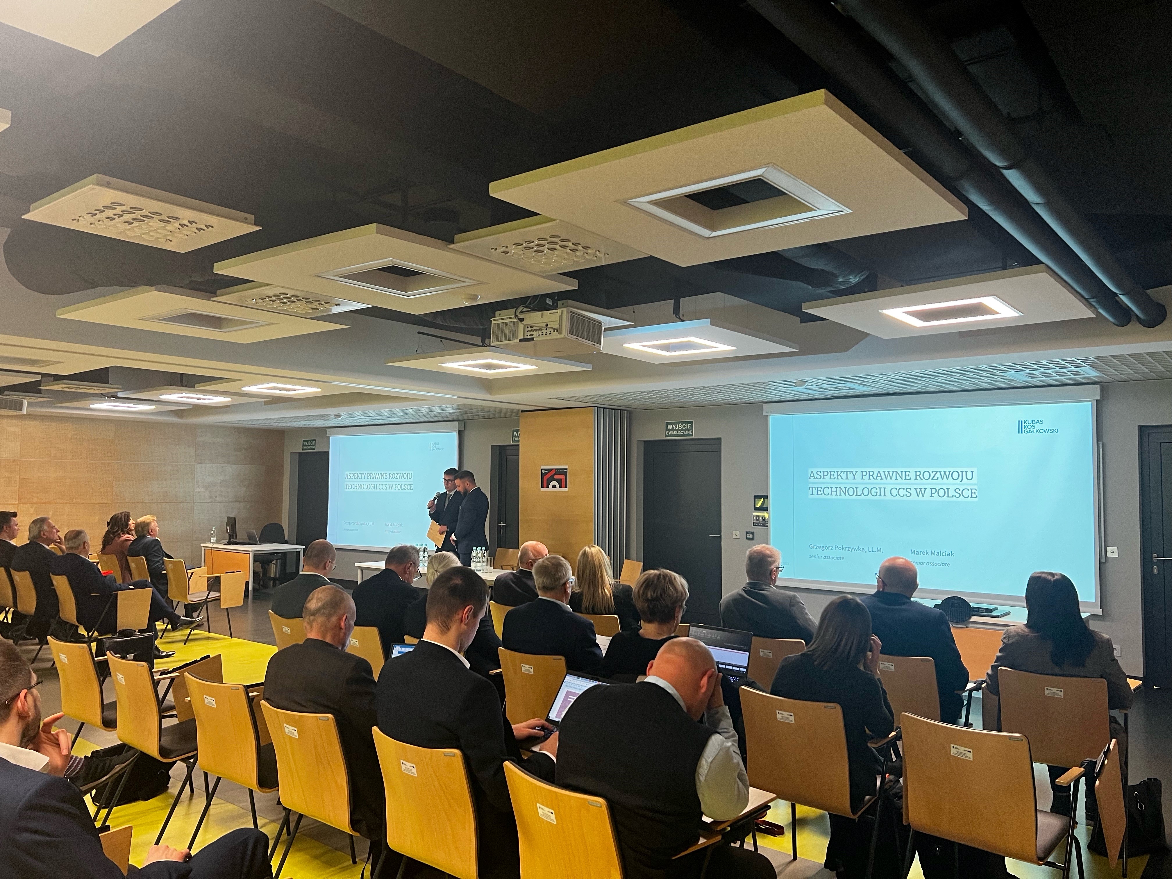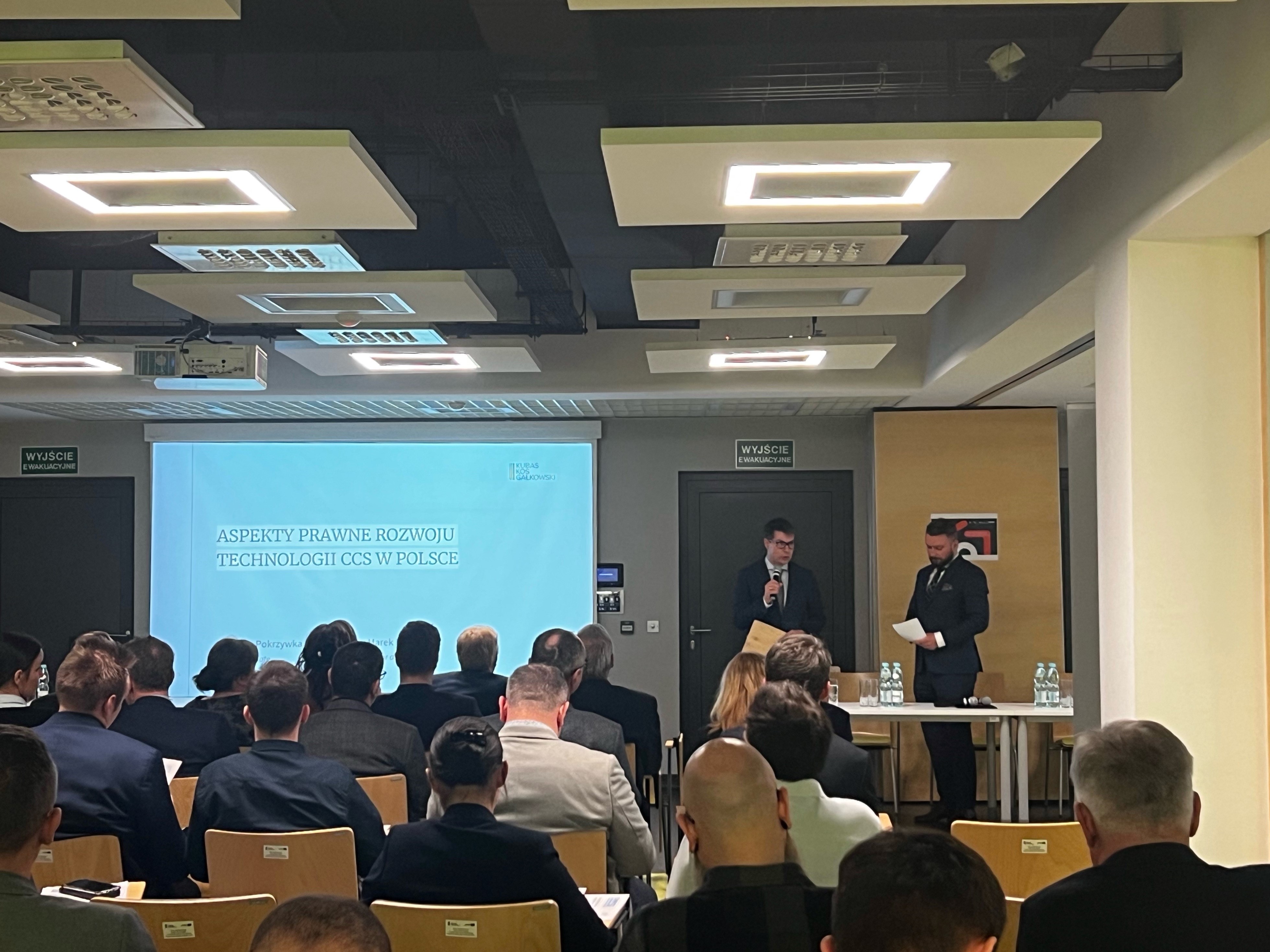 Prelekcję na temat aspektów prawnych rozwoju technologii CCS w Polsce wygłosili mec. Grzegorz Pokrzywka oraz mec. Marek Malciak, senior associates KKG.